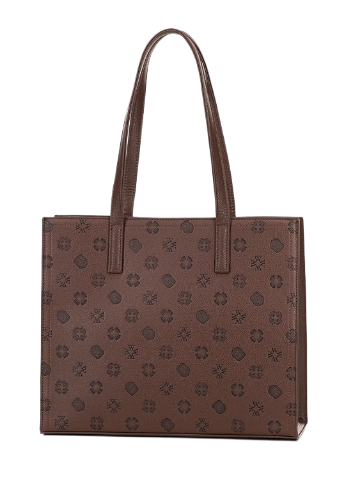 Damska shopperka z ekoskóry w tłoczoną sygnaturę brązowa